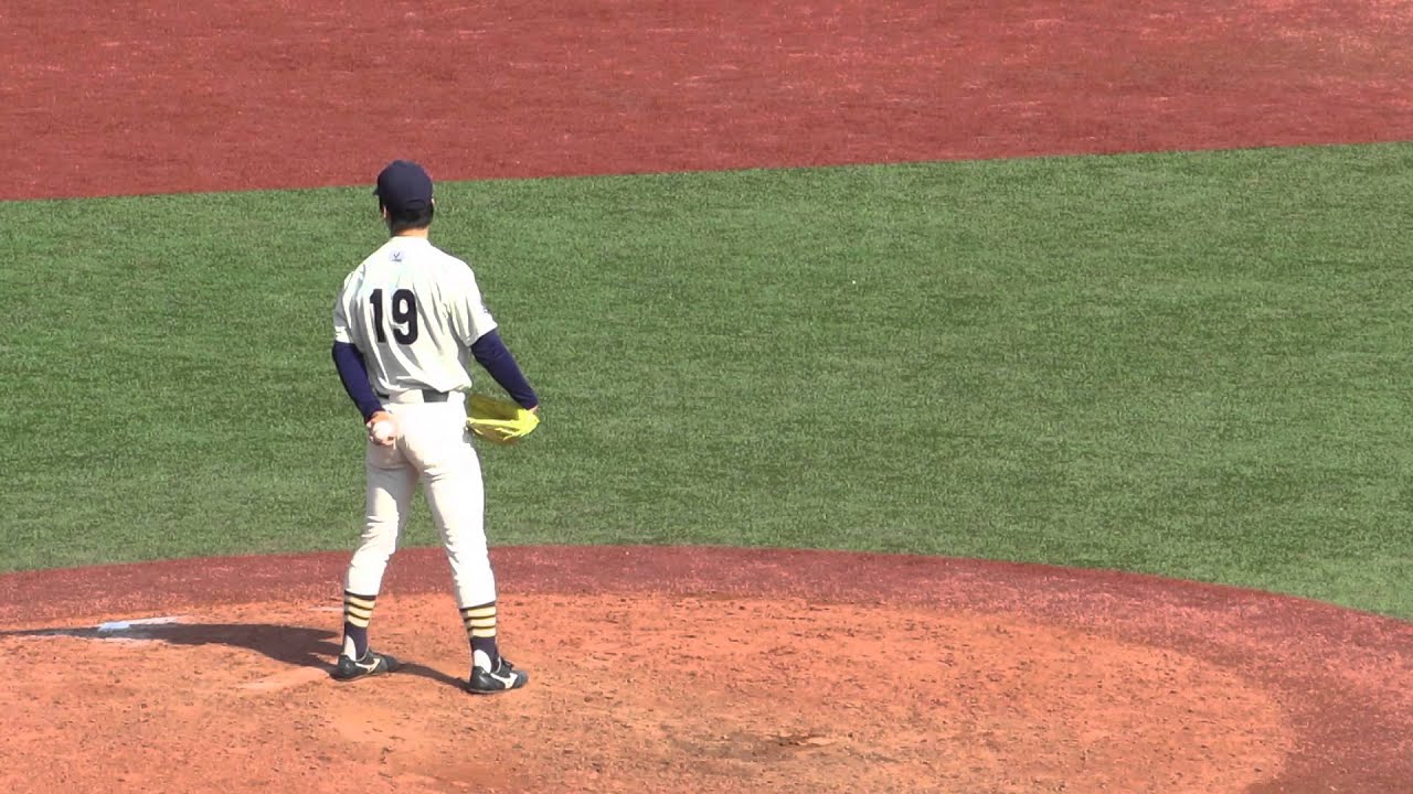8回裏から、齊藤 大将 (政経2年 桐蔭学園)を救援に送り明治大学が逃切りをはかる。