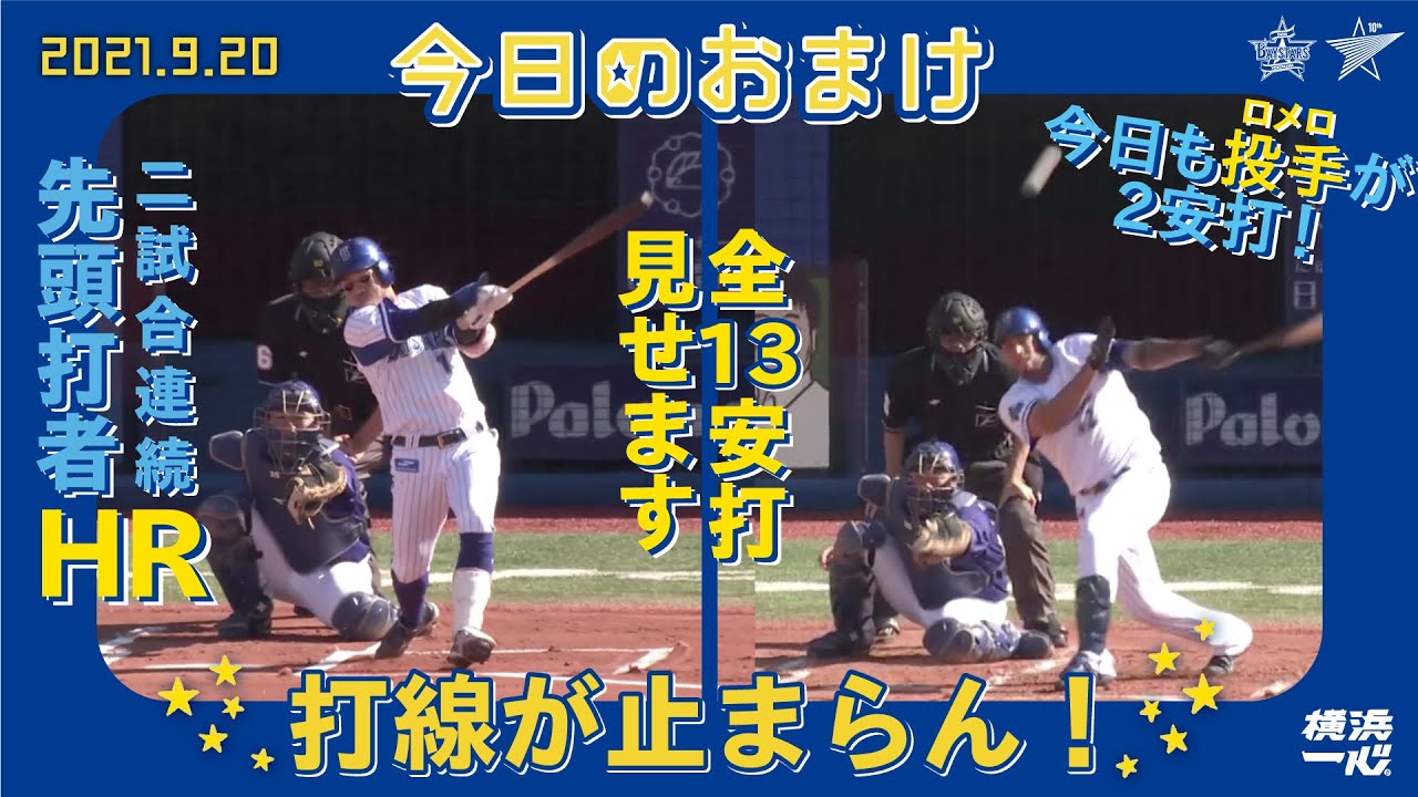 9月20日は全13安打全部見せます! #ベイスターズ #桑原将志 #ロメロ 公式HPはコチラ:https://www.baystars.co.jp/ #プロ野球baystarsCENTRAL LEAGUEDeNAOfficial ChannelOfficial VideoYOKOHAMA DeNA BAYSTARSYOKOHAMA DeNA BAYSTARS Official ChannelYOKOHAMA DeNA BAYSTARS Official Videoベイスターズ横浜横浜DeNAベイスターズ横浜スタジアム NPBHUB.COM | The Fanbase of Nippon Baseball & Nippon Professional Baseball