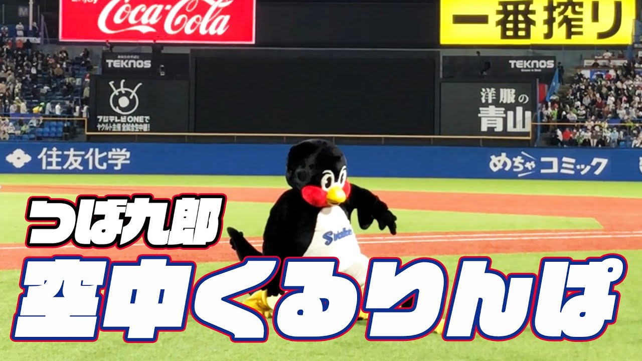Tokyo-Yakult-Swallows: 今日も頑張りました。つば九郎空中くるりんぱ | 2023年4月22日 巨人戦(神宮球場)