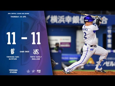 YOKOHAMA-DeNA-BAYSTARS: 2021.4.1ハイライト【DeNA vs ヤクルト】15安打二桁得点と打線が爆発するも、終盤に追いつかれ引き分けに終わる・・