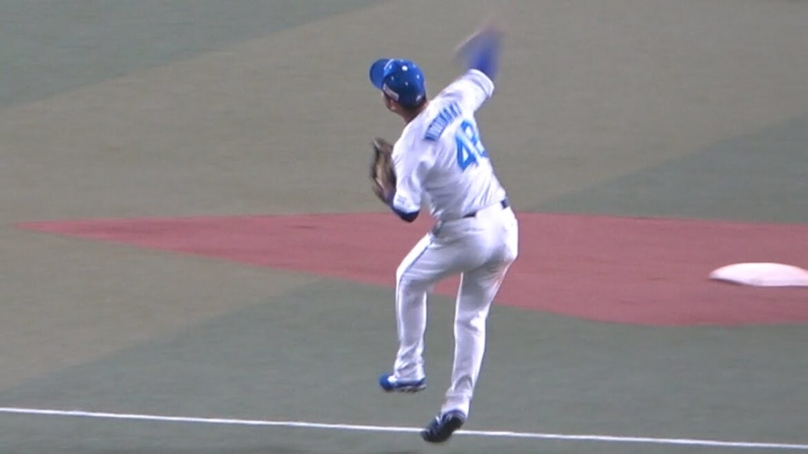 小笠原が弾いた打球を溝脇が物凄いスローイングのファインプレー! (2023/04/21)