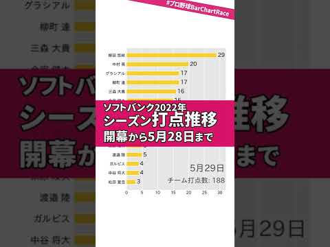 渡邉陸5打点!2022年ソフトバンク打点推移(5月28日時点)⚾#プロ野球BarChartRace