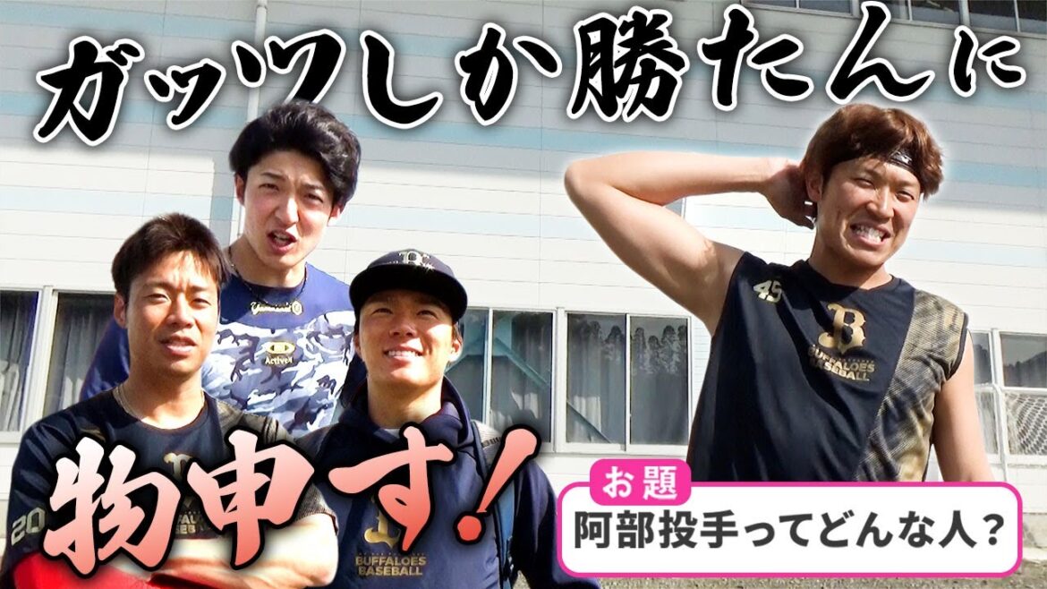 ひとつのお題について、バファローズ選手にカメラに向かって自分の思いをひとこと言ってもらう「カメラに向かってひとこと」。今回は、「阿部投手ってどんな人?」というお題です。最早お馴染みとなったあのセリフにツッコミが入りまくる?!全編はBPB DXでご覧ください。