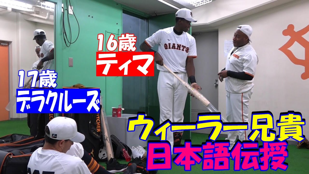 ドミニカ共和国からやってきた16歳のティマ選手と17歳のデラクルーズ選手。初めての東京ドームに大興奮!そしてウィーラー兄貴が日本語を伝授!