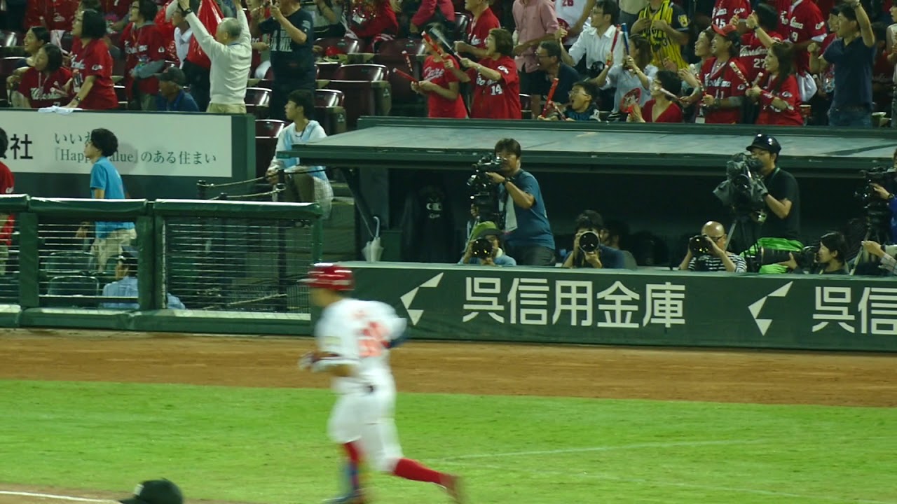 2017年9月5日 マツダスタジアム 広島東洋カープvs阪神タイガース 福留の2ランで逆転された9回、ヒットと盗塁の野間を二塁に置いて阪神のクローザー、ドリスから左中間への逆転サヨナラ2ランホームラン! Hiroshima Toyo Carp安部友裕広島東洋カープ NPBHUB.COM | The Fanbase of Nippon Baseball & Nippon Professional Baseball