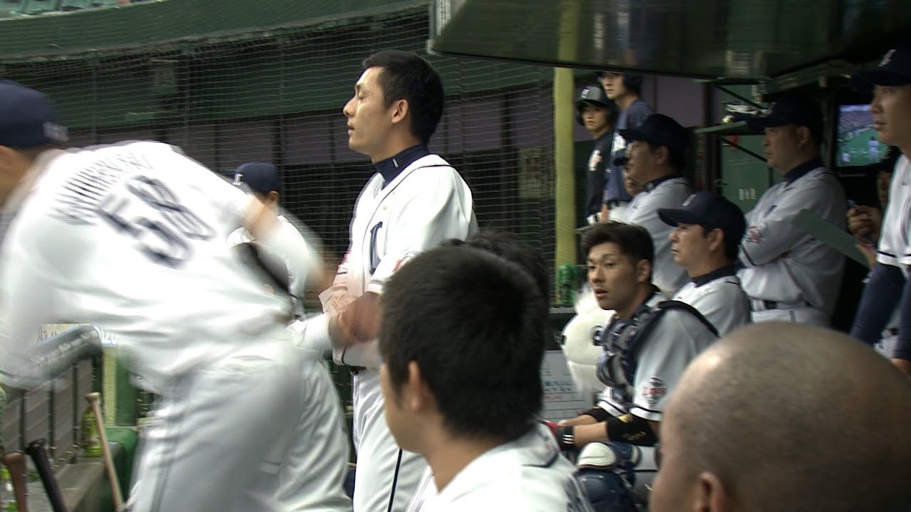 1回一死二塁。埼玉西武の先制のチャンスに、キャプテン栗山の一打はライト頭上を抜けるかと思われた打球。これを角中が好捕すると走者・片岡は三塁まで進んだ。だが、打った栗山は納得できず、ベンチに戻った後にヘルメットを叩きつけて悔しがった。 (10月14日 埼玉西武-ロッテ) 1014201310142013年10月14日CSSaitama Seibu Lionsクライマックスシリーズパ・リーグパシフィックリーグファーストステージマリーンズライオンズロッテ千葉埼玉埼玉西武ライオンズ好プレー所沢栗山巧西武西武ドーム NPBHUB.COM | The Fanbase of Nippon Baseball & Nippon Professional Baseball
