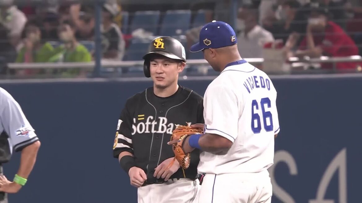 7回表、牧原大成(ソフトバンク)がこの日2本目となるヒットをレフトへ放つ!