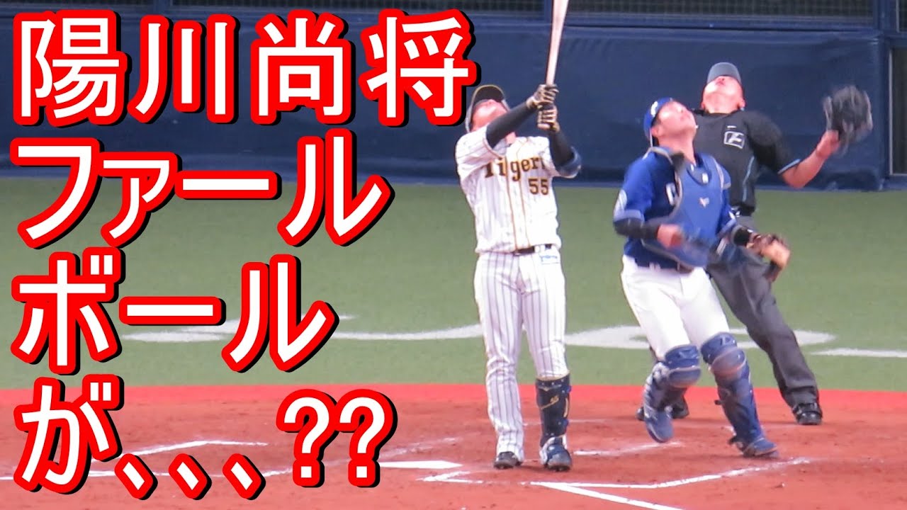 陽川尚将が引っぱたいた球が京セラドームの天井に届いて、引かかってしまった!ボールが落ちてこないで場内ざわつきました。
