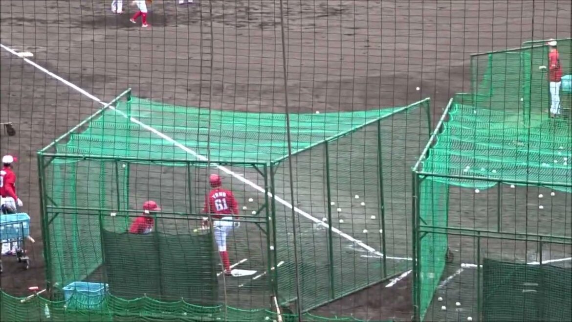Hiroshima Toyo Carpフリーバッティング中神拓都前川誠太広島東洋カープ春季日南キャンプ田中広輔矢野雅哉
