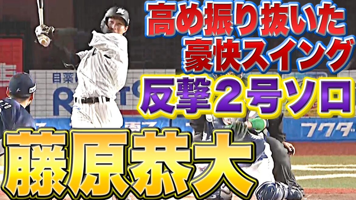 千葉ロッテ・藤原恭大は8回、高めのストレートを振り抜き左中間への今季2号ソロホームランを放つ!! 5対1と大きくリードされている場面での1発は、まだまだ諦めないという勝利への執念を感じる。この豪快なスイングには心を奪われそうになる。あと顔も良い。