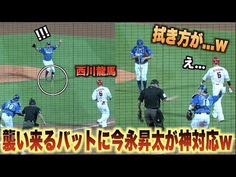 この気遣いはさすが…西川龍馬が放った”バット”が今永昇太を襲うも直後の神対応に感動!!#広島#カープ#横浜#DeNA#ベイスターズ