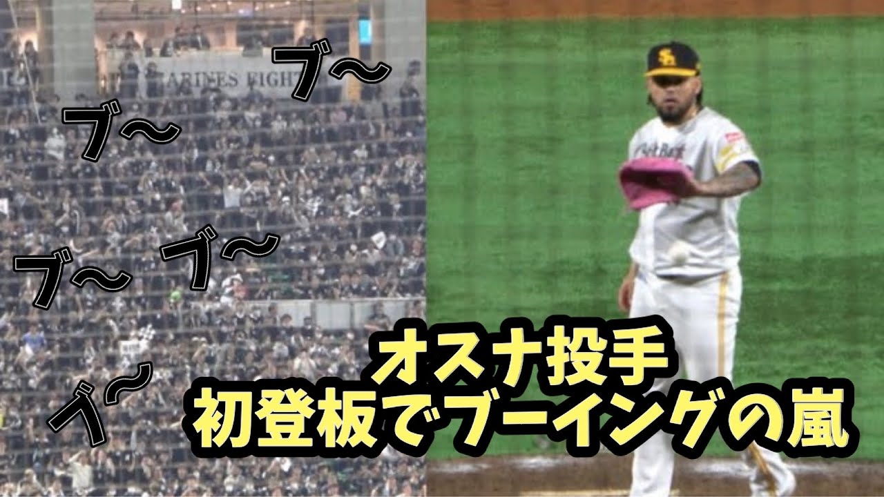 ソフトバンクホークス🦅オスナ登場に千葉ロッテファン大ブーイング😅😅2023.3.31