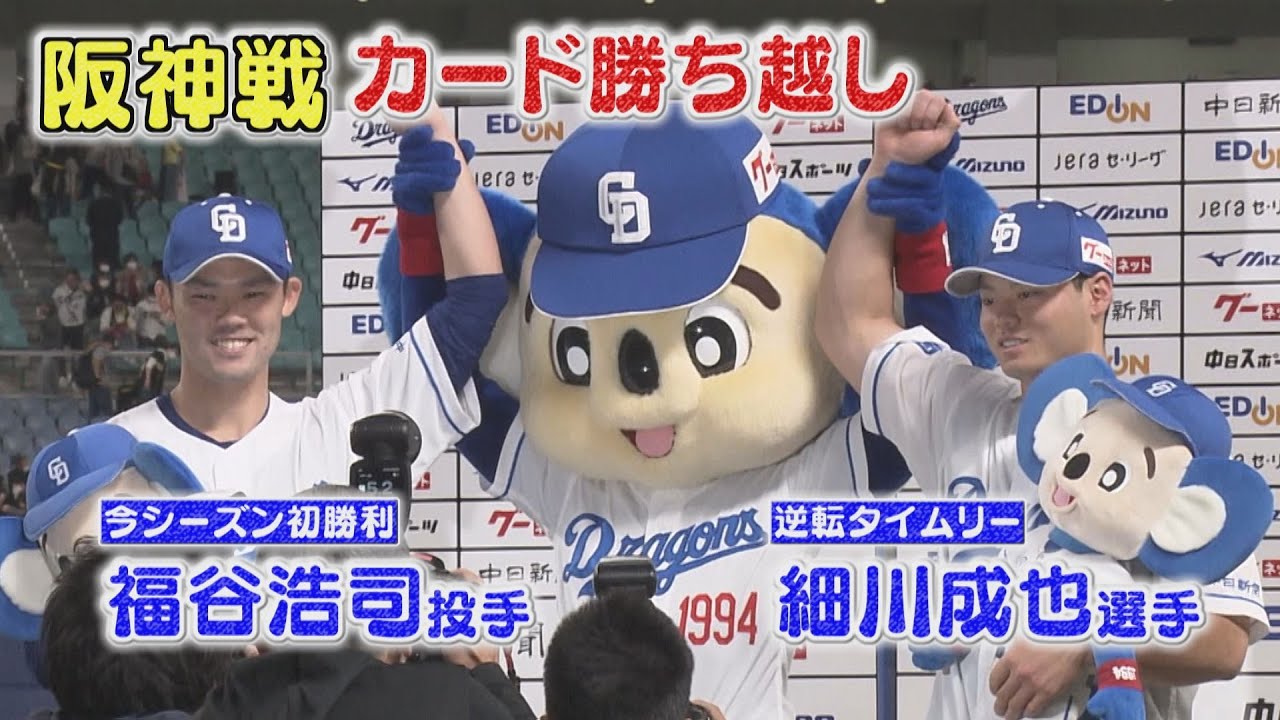 9回には守護神マルティネスが試合を収め、福谷は今シーズン初勝利。ドラゴンズ、今シーズン2度目の勝ち越しを決めました。
