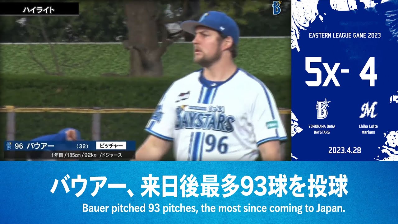 2023シーズン イースタン・リーグ公式戦 #ベイスターズ #バウアー #bauer @TrevorBauerInJapanese 【ハイライト映像提供】 イージースポーツ:https://easysports.jp/ #プロ野球baystarsCENTRAL LEAGUEDeNAOfficial ChannelOfficial VideoYOKOHAMA DeNA BAYSTARSYOKOHAMA DeNA BAYSTARS Official ChannelYOKOHAMA DeNA BAYSTARS Official Videoベイスターズ横浜横浜DeNAベイスターズ横浜スタジアム NPBHUB.COM | The Fanbase of Nippon Baseball & Nippon Professional Baseball