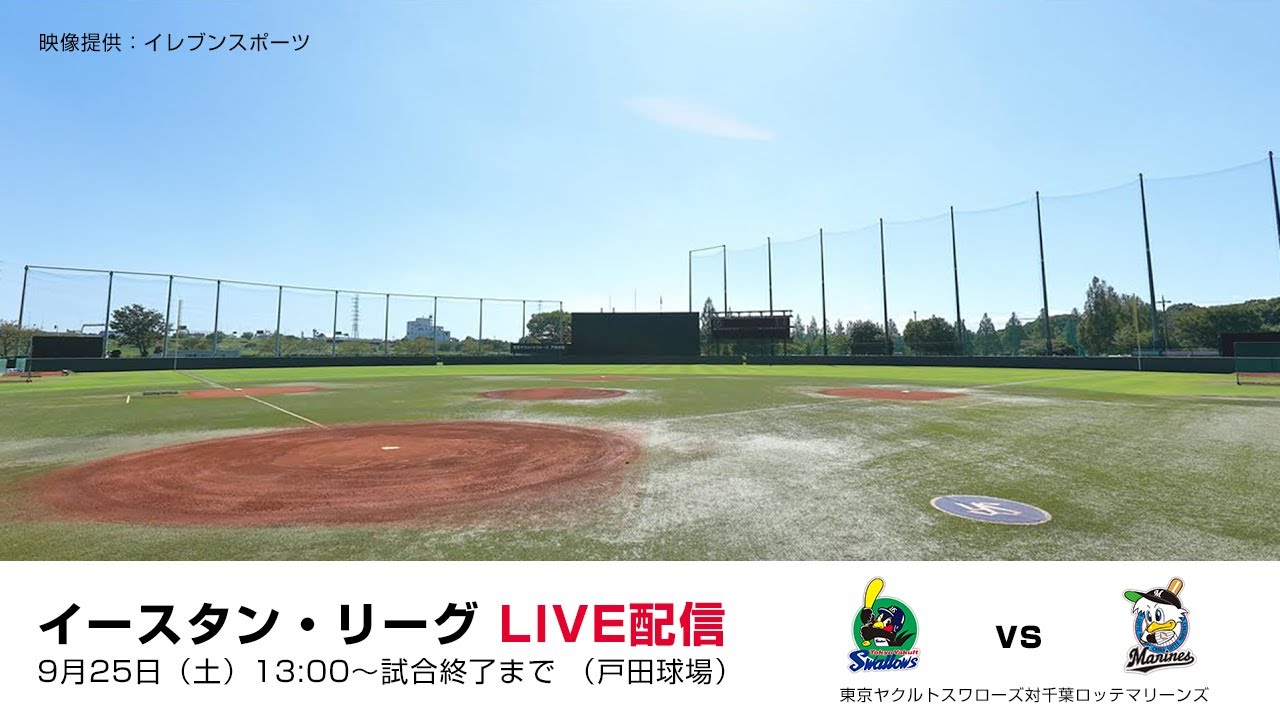 9月25日(土)イースタン・リーグ 東京ヤクルトスワローズ対千葉ロッテ戦(戸田球場)を球団公式YouTubeにて生配信します。