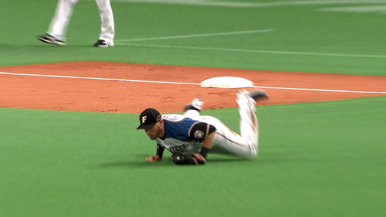 8回、二死二塁の場面でレアードが、糸井の三遊間を抜けるかと思われた当たりを好捕。抜けていればランナーが帰ってきていたかもしれないだけに失点を防ぐ大きなプレーとなった。 (5月16日 日本ハム-オリックス) #プロ野球baseballChiba Lotte MarinesNPBオリックスパ・リーグバファローズファイターズレアードレアード 野球北海道千葉ロッテマリーンズ好プレー日本ハム札幌ドーム NPBHUB.COM | The Fanbase of Nippon Baseball & Nippon Professional Baseball