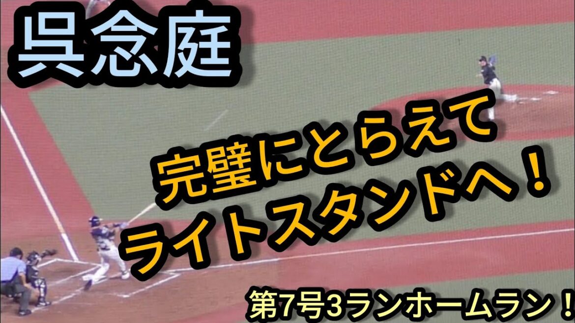 小島和哉選手から、高めのストレート完璧にとらえてライトスタンドへ飛びこむ3ランホームランを放った呉念庭選手の動画です。