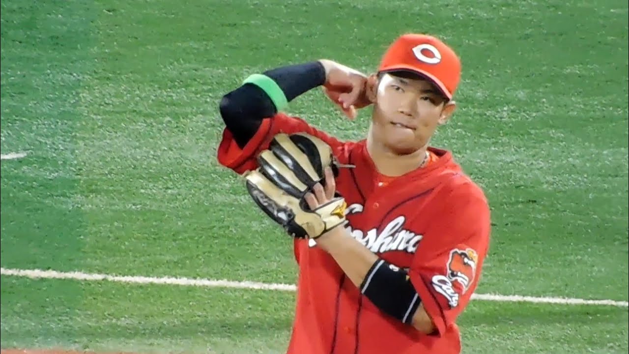 坂倉将吾、ファインプレーでマッスルポーズを見せつける Hiroshima Toyo Carp坂倉将吾広島東洋カープ NPBHUB.COM | The Fanbase of Nippon Baseball & Nippon Professional Baseball