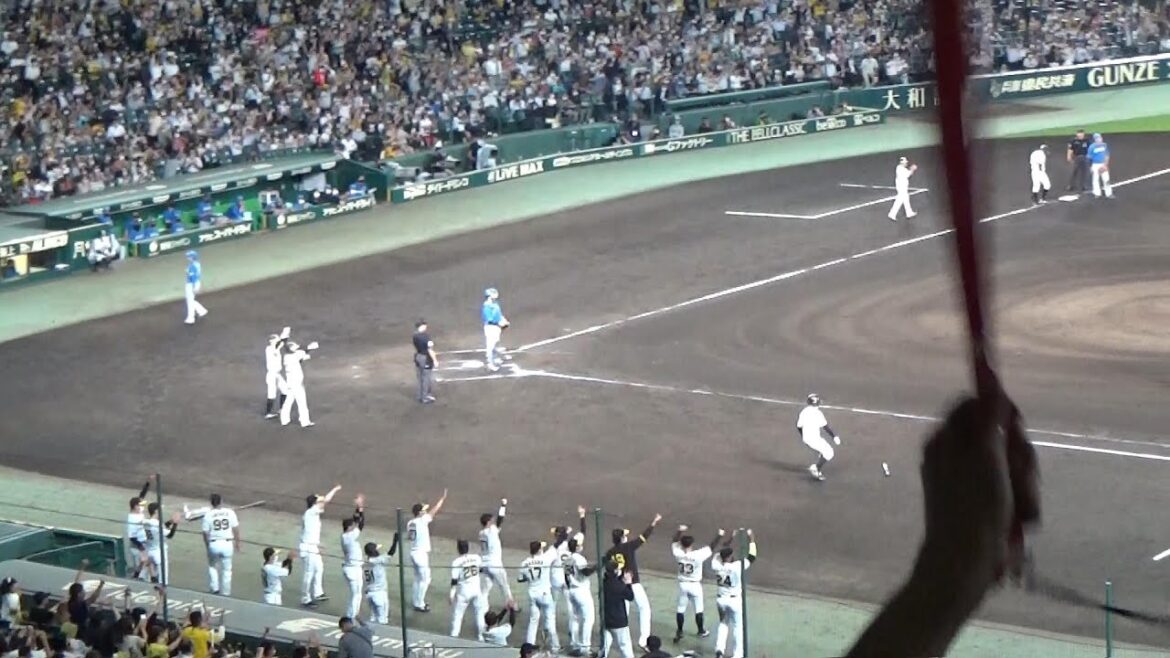 8回裏、7-6で阪神が1点ビハインドながら1死満塁とし、代打の山本泰寛が堀瑞輝から同点となるタイムリーヒットを放ちました。
