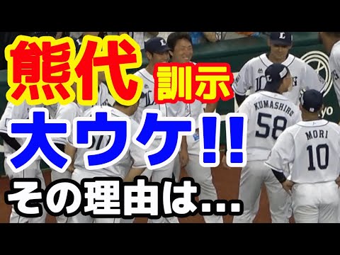 0.5差の首位ソフトバンクをメットライフドームに迎えた2連戦の初日、いつものように熊代聖人選手の訓示が始まりました。でもいつもより選手のウケがいい。まともに聞き取れないであろうお客さんも爆笑している。なぜか?