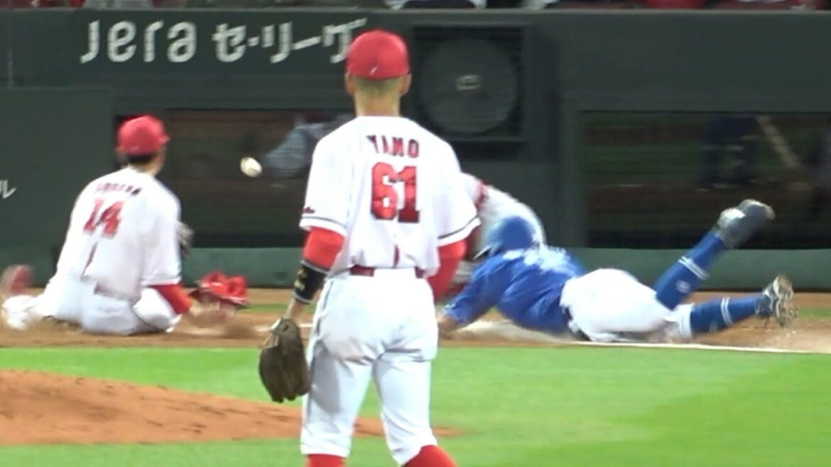 相手のパスボールでキノタクが必死のヘッスラ勝ち越しホームイン! (2023/04/26)