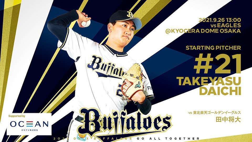 #9月26日 #楽天戦 #予告先発投手 #竹安大知 #京セラドーム大阪 #13時00分試合開始 #Bs2021 #buffaloes #baseball #ORIX #プロ野球 13時00分試合開始9月26日baseballBs2021buffaloesNPB Pacific LeagueOfficial MediaORIXORIX BuffaloesORIX Buffaloes Official Mediaオリックス・バファローズプロ野球予告先発投手京セラドーム大阪楽天戦竹安大知 NPBHUB.COM | The Fanbase of Nippon Baseball & Nippon Professional Baseball