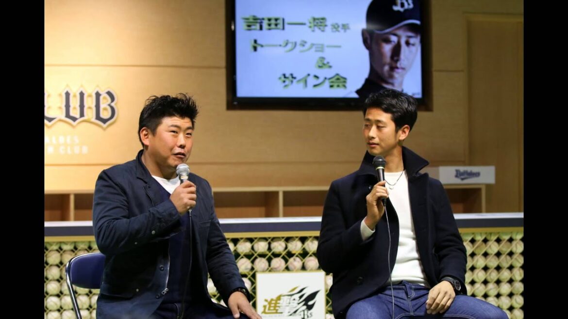 2014年12月23日(火・祝)京セラドーム大阪 BsSQUAREで開催されたオリックス・バファローズの吉田一将投手トークショー&サイン会。MCは初挑戦の北川博敏プロジェクトマネージャー。ボイスレコ-ダーで収録した音声データにデジカメ撮影の写真を挿入した動画風スライドショー。