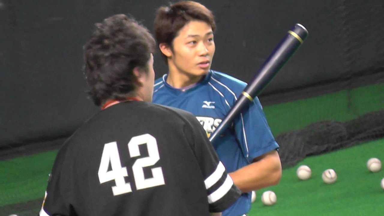 ナカシはソフトバンクの飯田優也投手とお話ししていました。同い年になるのかな。飯田投手がしゃがんでいるのは、ナカシのバッティングフォームのマネですかね?(笑) 9/19-23の試合では各日150枚限定で練習見学付チケットを販売。開場前の練習風景を1塁側SS指定席最前列から30分間見学。 【練習見学】#バッティング#プロ野球#マスコット20152015/09/212015/9/212015年9月21日9/219月21日ORIX BuffaloesSBアップイケメンオリックス・バファローズお喋りお話お話しかっこいいカッコ良いかわいいキャラキャラクターきゅんソフトバンクたくやたにぐちナカジなかしまなかしまたくやバッティング練習ハムファイターズホークスヤー様ゆうや中島中島卓中島卓也優也北海道可愛い喋る打撃練習日ハム日本ハム札幌札幌ドーム格好良い球団球団マスコット福岡福岡ソフトバンクホークス笑顔練習練習見学話す谷口谷口きゅん谷口雄也選手野球野球選手雄也飯田飯田優也 NPBHUB.COM | The Fanbase of Nippon Baseball & Nippon Professional Baseball