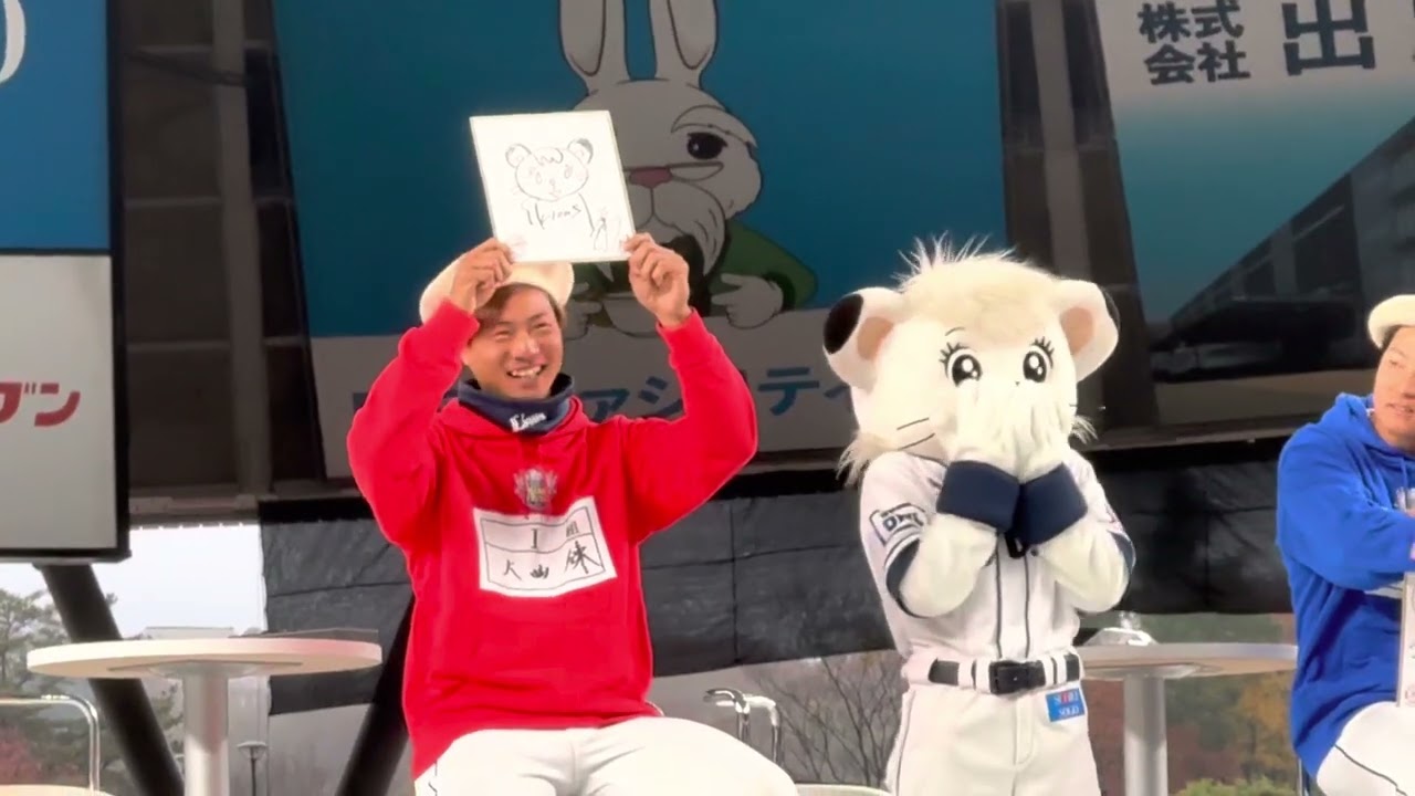 ライオンズサンクスフェスタ2022 いつも仲良しライナちゃんの絵が描けない訳ないですよね😏 #埼玉西武ライオンズ #ライオンズサンクスフェスタ2022 #外崎修汰 #大曲錬 #鈴木将平 #平沼翔太 #隅田知一郎 Saitama Seibu Lions埼玉西武ライオンズ大曲錬 NPBHUB.COM | The Fanbase of Nippon Baseball & Nippon Professional Baseball