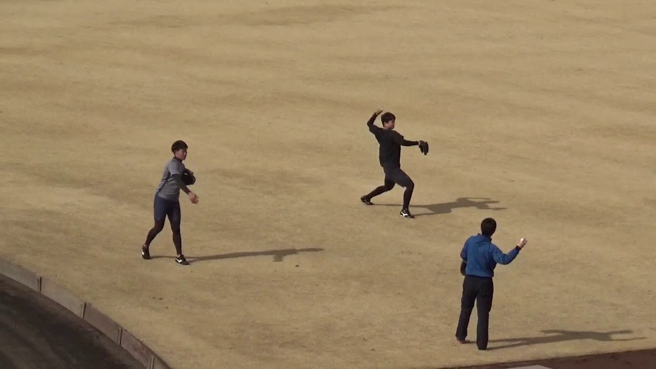 2018/1/15@鎌ヶ谷スタジアムで行われた日本ハム新人合同自主トレでスタートダッシュ&キャッチボールをするルーキーたち(#21清宮幸太郎#35西村天裕#46田中瑛斗#50鈴木遼太郎#52宮台康平#55難波侑平#63北浦竜次)