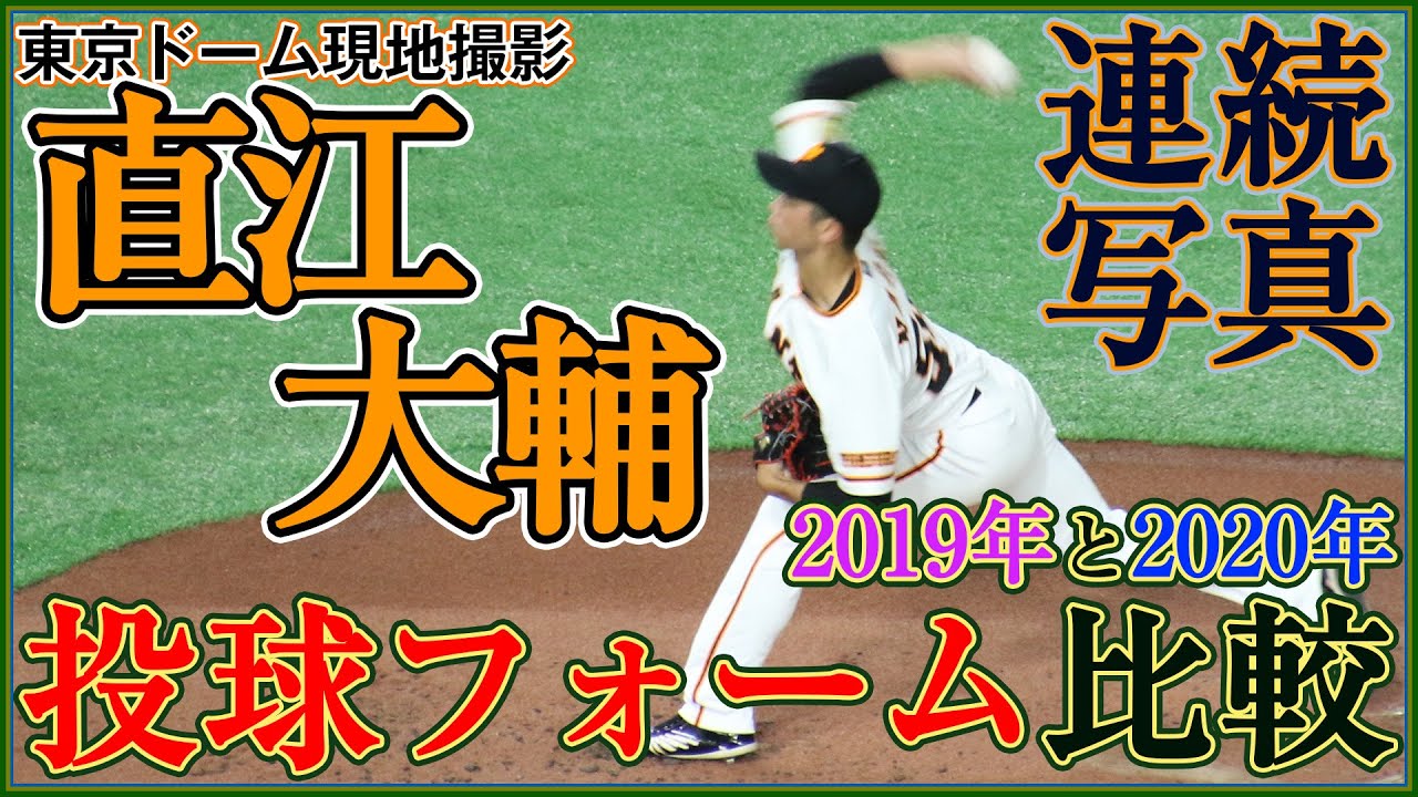 2019年と2020年に東京ドームで登板したときの連続写真を比較してみました。直江投手が進化している様子が分かります。