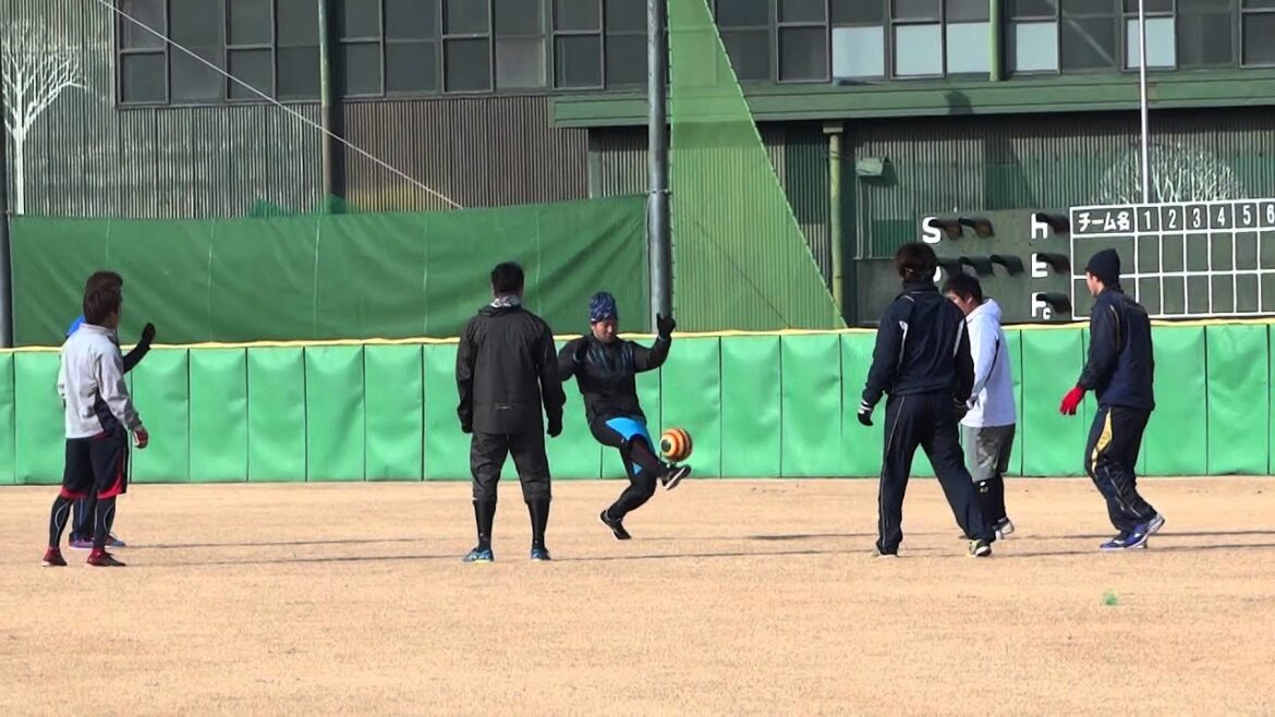 埼玉西武ライオンズの選手たちが自主トレを行っている中、中村剛也選手や炭谷銀仁朗選手などはサッカーのリフティング練習を行ってました。