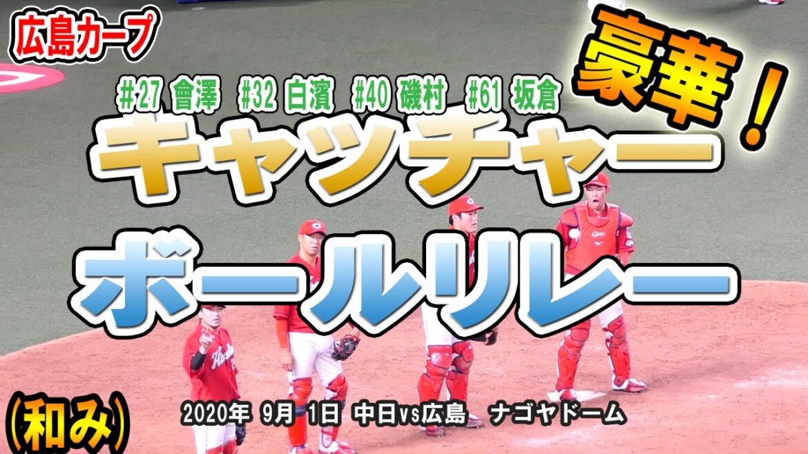 会沢、白浜、磯村、坂倉とプラスαの5人による豪華ボールリレーをご覧ください(笑)