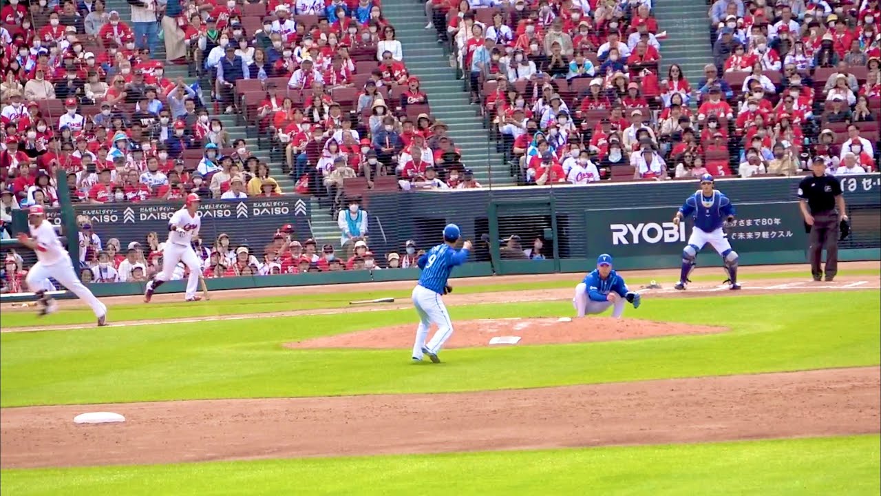 (どうしたんだ大和)大和、体勢を崩してホームに投げられず。一塁に送球! 横浜DeNAベイスターズ 2023/4/23