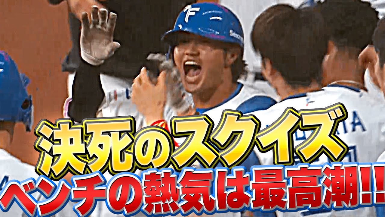 北海道日本ハムが勝ち越しに成功してなお一死走者三塁の場面、細川凌平が決死のスクイズを成功させた!! 新庄剛志監督も渾身のガッツポーズ、気迫感じる見事な追加点にベンチの熱気も最高潮に…!マルチアングルでたっぷりご堪能あれ。