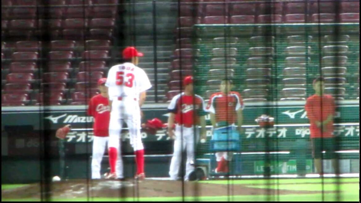 平成24年7月23日(月曜日) マツダスタジアム ナイター練習、シート打撃 投手:戸田隆矢 #53 、打者:BLAD ELDRED #55 レフトの「ただみエリア」のさらに外、奥只見歩道から Hiroshima Toyo Carp広島東洋カープ戸田隆矢 NPBHUB.COM | The Fanbase of Nippon Baseball & Nippon Professional Baseball