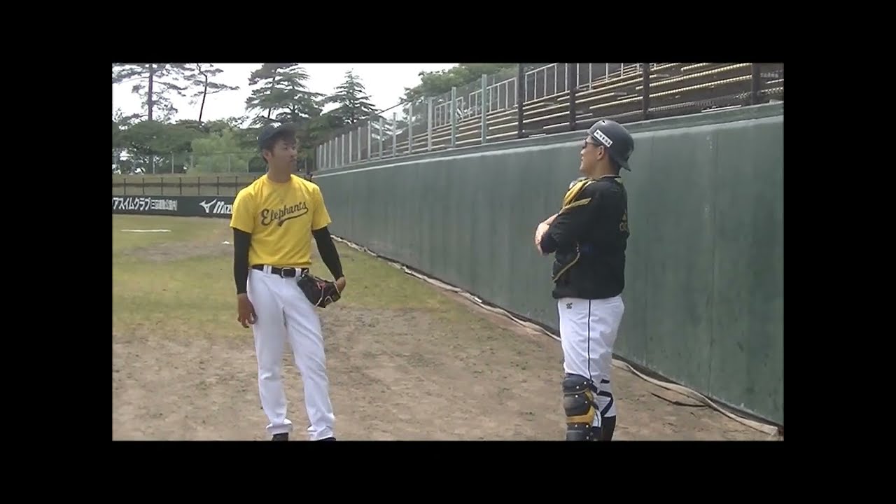 捕手役の高森さんと秋吉投手は同級生という間柄も感じられる動画、取材となりました。