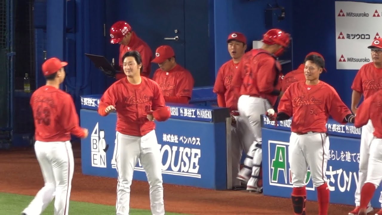 場内島内コール!一打勝ち越しの場面を二者連続三振で火消しする島内投手(床田投手交代後、すぐさま労いの声掛けをする新井監督の人柄よ)