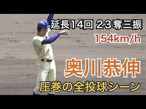 星稜のエース奥川投手は延長タイブレークでも154キロという球速をだす恐ろしい投球で、智弁和歌山から23奪三振。