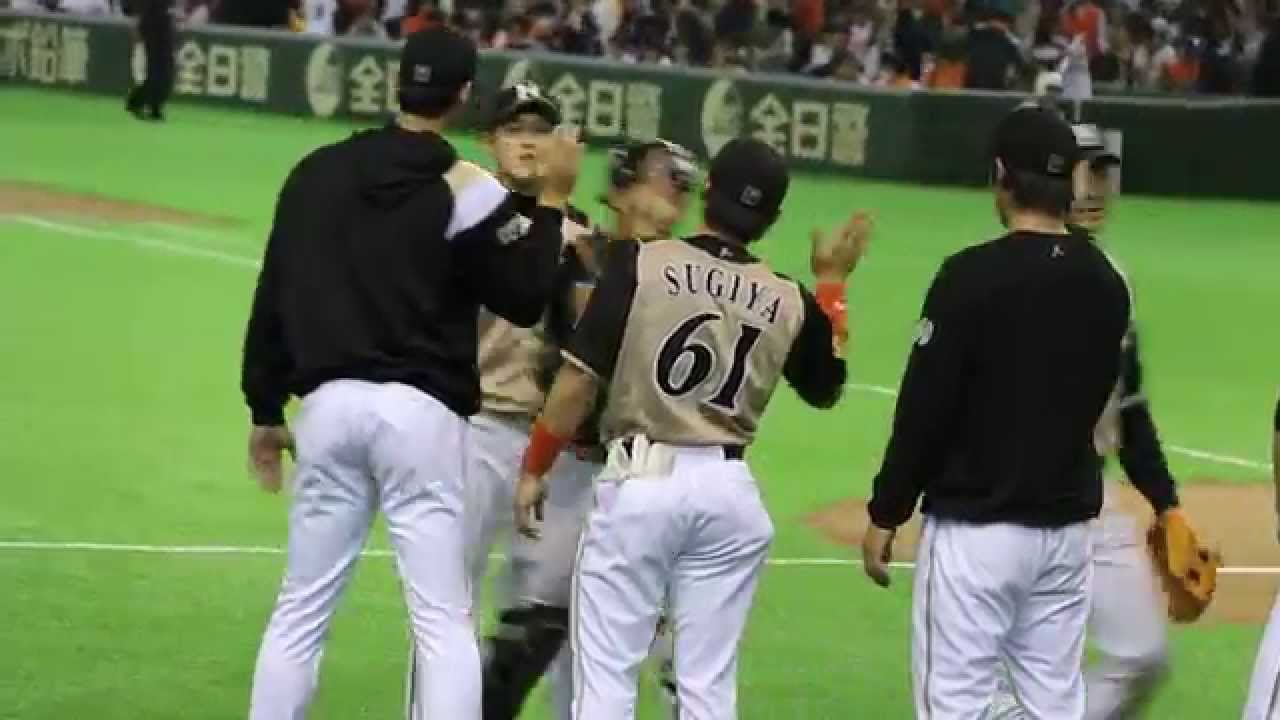 2014年3月22日(土)に東京ドームで行われた対巨人オープン戦での勝利にハイタッチの様子。陽、中田、岡の外野手の勝利のハイタッチがどんなものかなぁと撮ってみましたが、最後の陽と杉谷の空タッチがメインとなりました。 Yomiuri Giantsハイタッチファイターズ北海道日本ハム杉谷拳士東京ドーム読売ジャイアンツ陽岱鋼 NPBHUB.COM | The Fanbase of Nippon Baseball & Nippon Professional Baseball