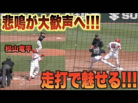 悲鳴からの大歓声!巧みなバットコントロールでスタンドを沸かす松山竜平!!#広島#カープ#オリックス#バファローズ