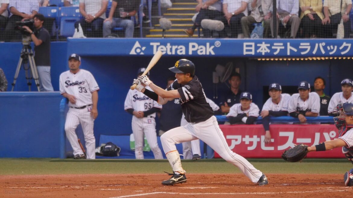 福岡ソフトバンクホークス 川瀬晃 バッティングフォーム&バッティング(スローモーション)【ライト前2点タイムリーヒット】