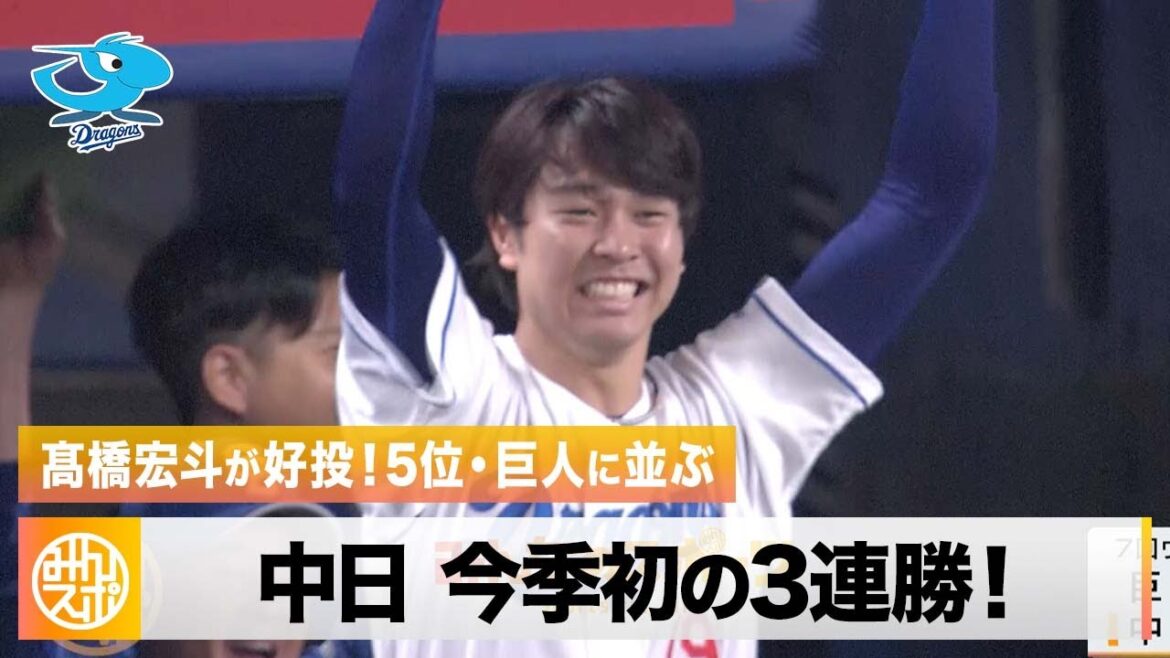 さらに8回。中日は満塁のチャンスを作り、4番・石川昂弥(21)。犠牲フライで勝ち越した中日。3日連続で8回に試合を決め、今年初の3連勝、ゲーム差なしで5位・巨人に並んだ。