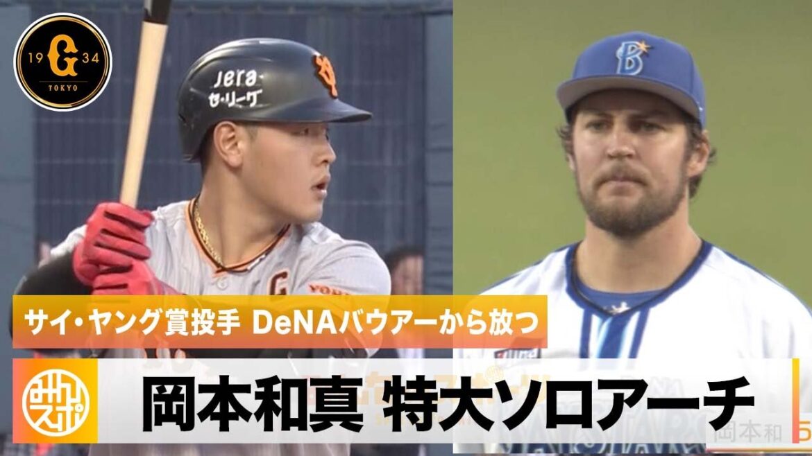 3連敗中と苦しむ巨人に復調の兆しが。まずは2回、キャプテン岡本和真(26)がサイ・ヤング賞投手、DeNA・バウアー(32)から同点の特大ソロアーチを放つ。