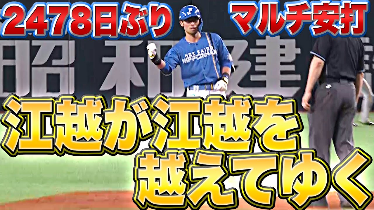 今シーズンから北海道日本ハムに移籍し、開幕1ヶ月半で数々の名シーンを残している江越大賀。本日は移籍後初のマルチヒットを放つ!! なんとこれが自身2478日ぶりのマルチヒット!! 新庄監督がその素質を認めスタメン起用を続けることにより、その殻を破りつつある!! この先の活躍も楽しみでしかない!!