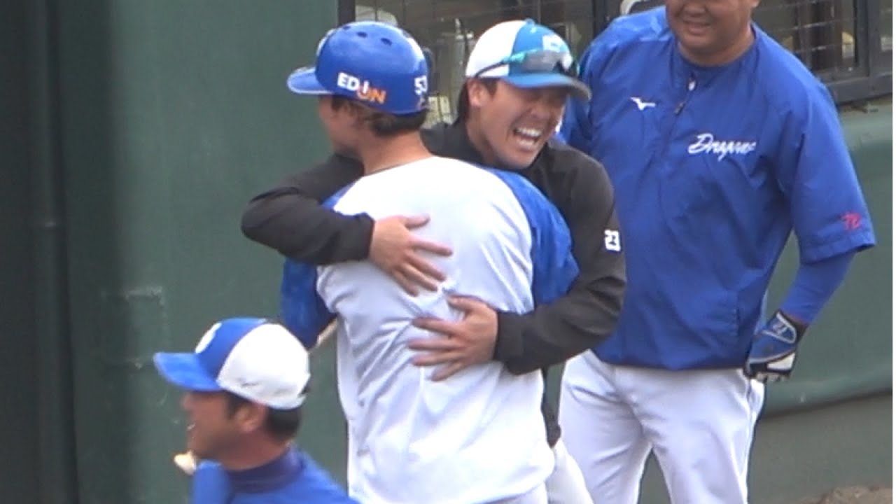 オリックスからそれぞれ移籍した後藤駿太と伏見がグラウンドで感動の再会! (2023/02/21)