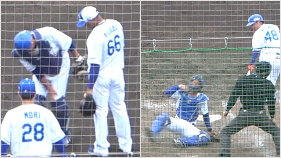 キノタク&加藤匠馬が2人とも負傷して北谷からキャッチャーが居なくなりかけたシーン (2023/02/15)
