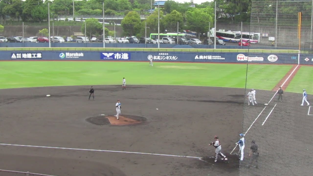 雨が降り出す中有薗直輝と宇佐見真吾を抑える石田隼都 2023年4月30日 日本ハムファイターズ対 読売ジャイアンツ(二軍)