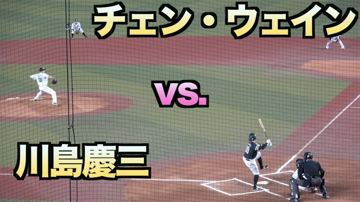 千葉ロッテマリーンズ時代のチェン・ウェインと福岡ソフトバンクホークスの川島慶三の対戦です。