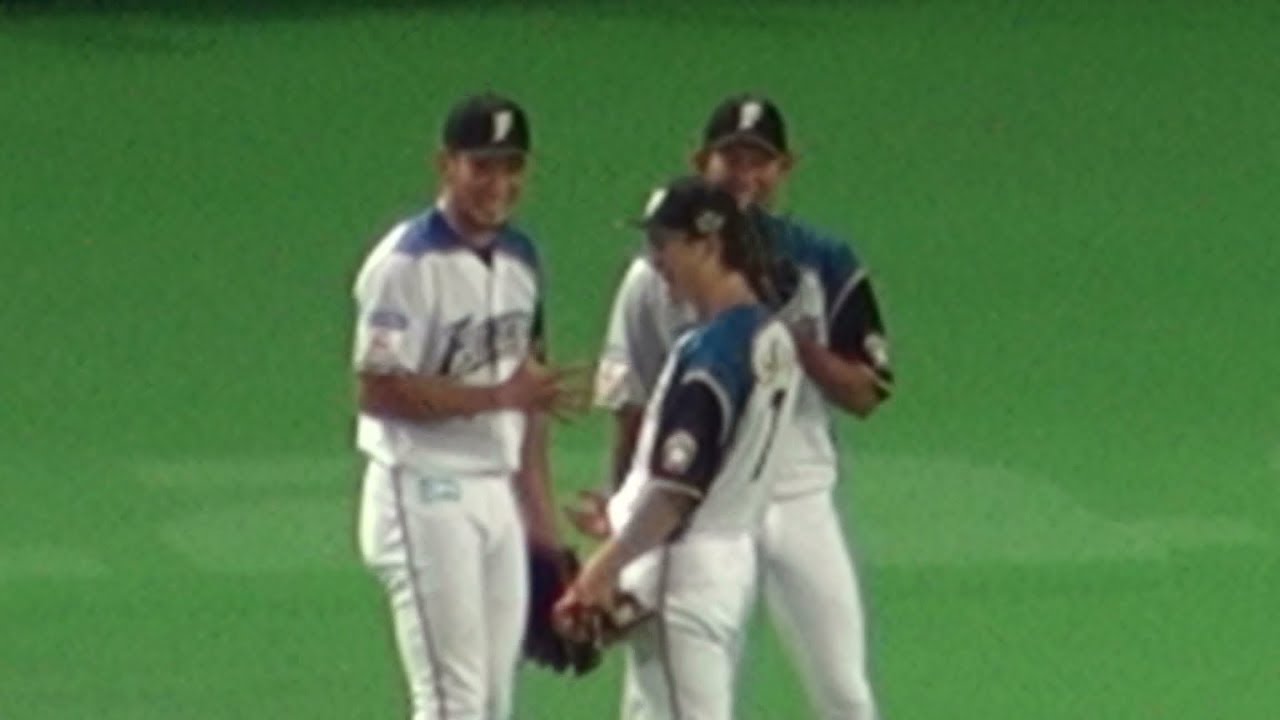 2018年10月2日、札幌ドームで行われた、北海道日本ハムファイターズvs埼玉西武ライオンズ 24回戦にて、試合前のファイターズの守備練習で、一塁ベース付近でのいつものじゃんけんです